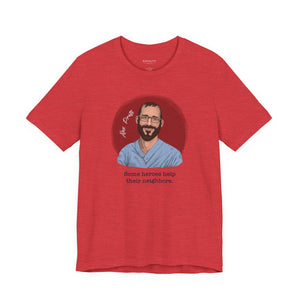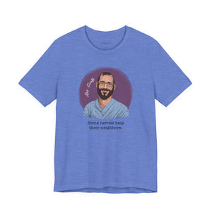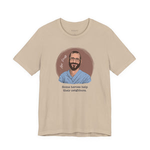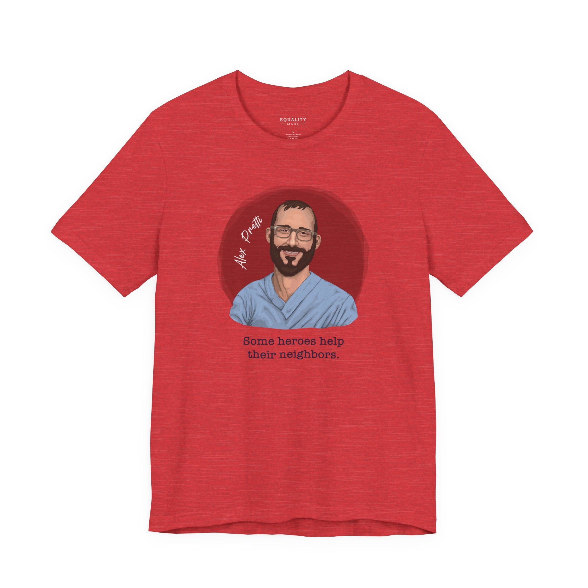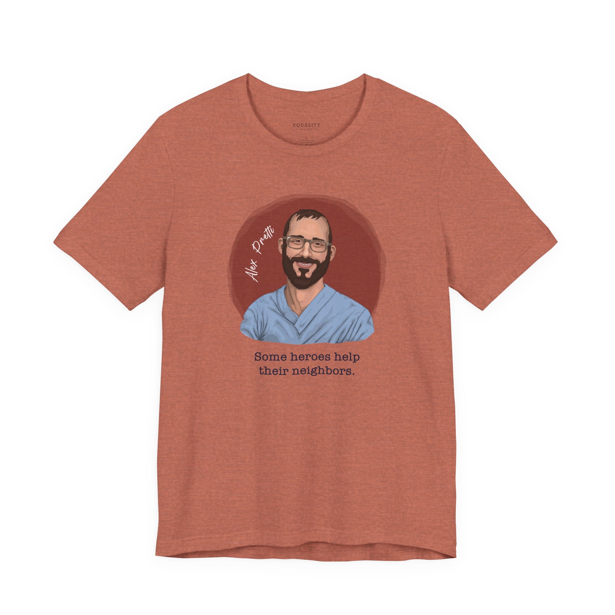 This t-shirt features a portrait of Alex Pretti—a VA ICU nurse, an avid outdoorsman, and by every account, someone who spent his life asking one simple question: "What can I do to help?"