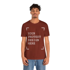 Personalized protest t-shirt printed with your custom design. Express your unique voice for social justice, political activism, or any cause that matters to you.