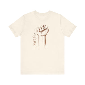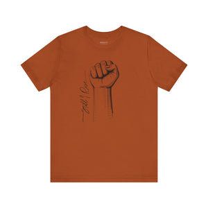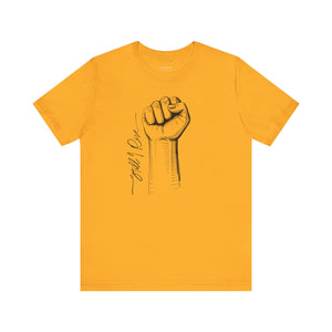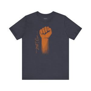 Powerful tee featuring raised fist with 'Still I Rise' text. Stand against fascism and defend democracy with this inspiring resistance symbol celebrating resilience and courage.