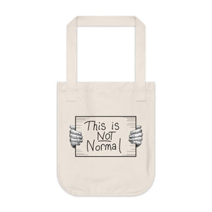 Durable organic canvas tote with powerful 'This is NOT Normal' protest sign design. Carry your essentials while taking a stand against concerning political developments.